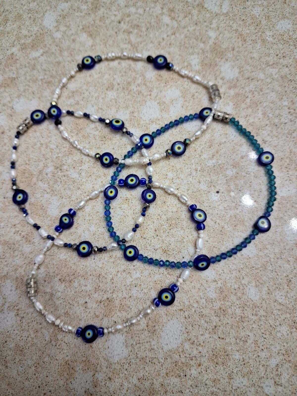 צמידי יד ורגל נגד עין הרע עם קריטסלי פניני מים