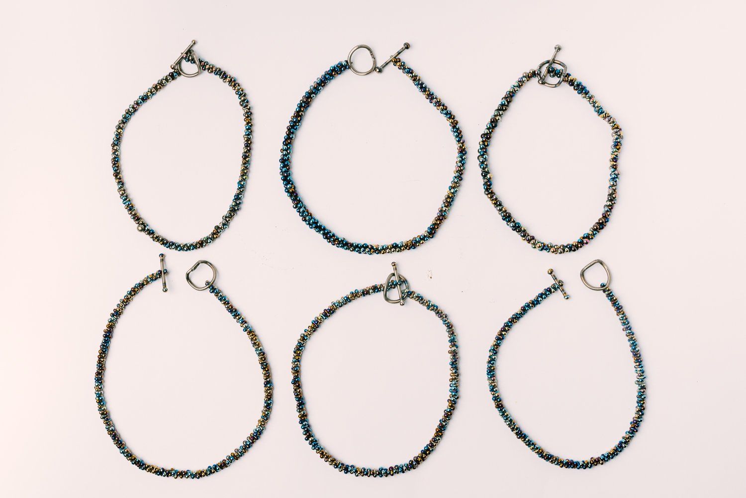 חרוזי טיטניום משובצים בקריסטלים לבנים